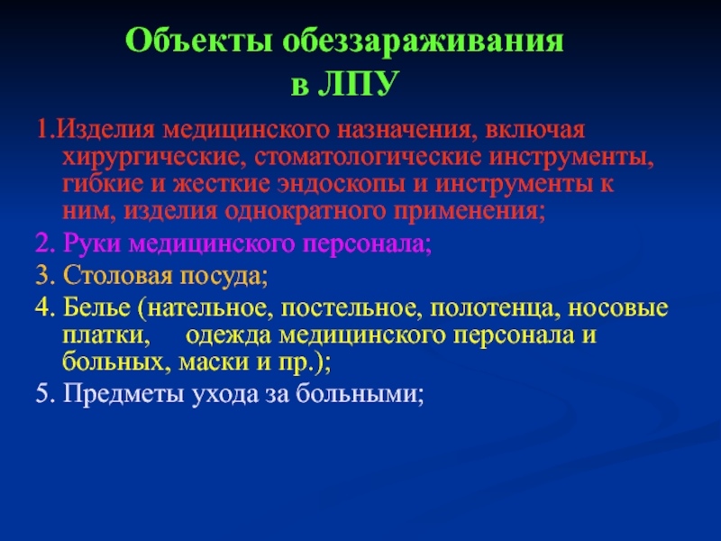 4. Белье (нательное, постельное, полотенца, носовые платки, одежда медицинского персонала и больных, маски и пр.);