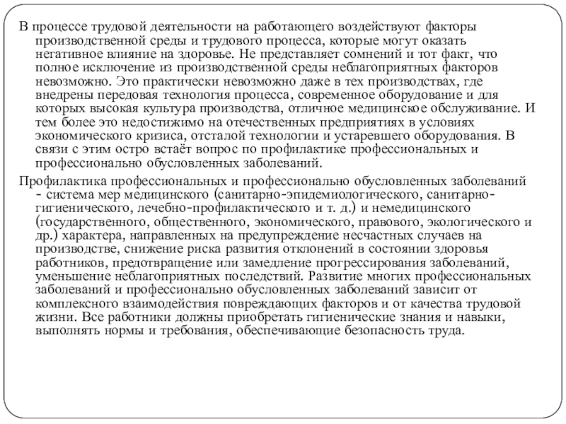 и трудового процесса, которые могут оказать негативное влияние на здоровье.