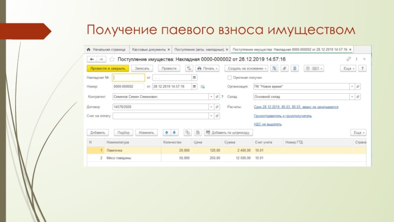 Слайд 13Документ «Возврат Паевого взноса имуществом»