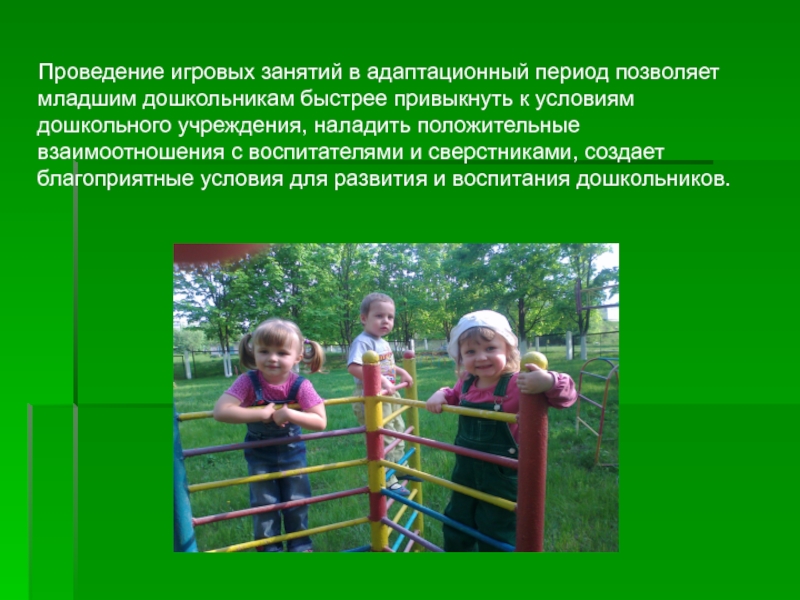 Слайд 9 Проведение игровых занятий в адаптационный период позволяет