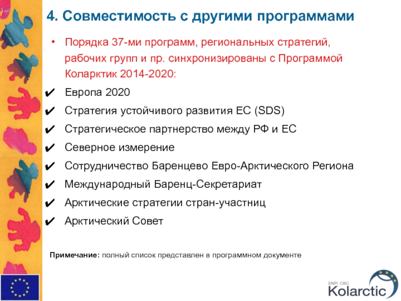 рабочих групп и пр. синхронизированы с Программой Коларктик 2014-2020: