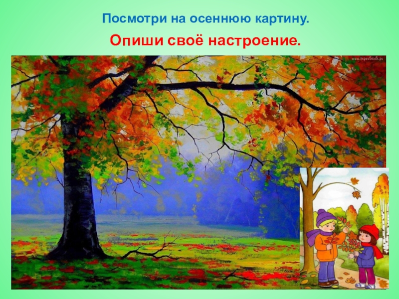 Посмотри на осеннюю картину. Опиши своё настроение.