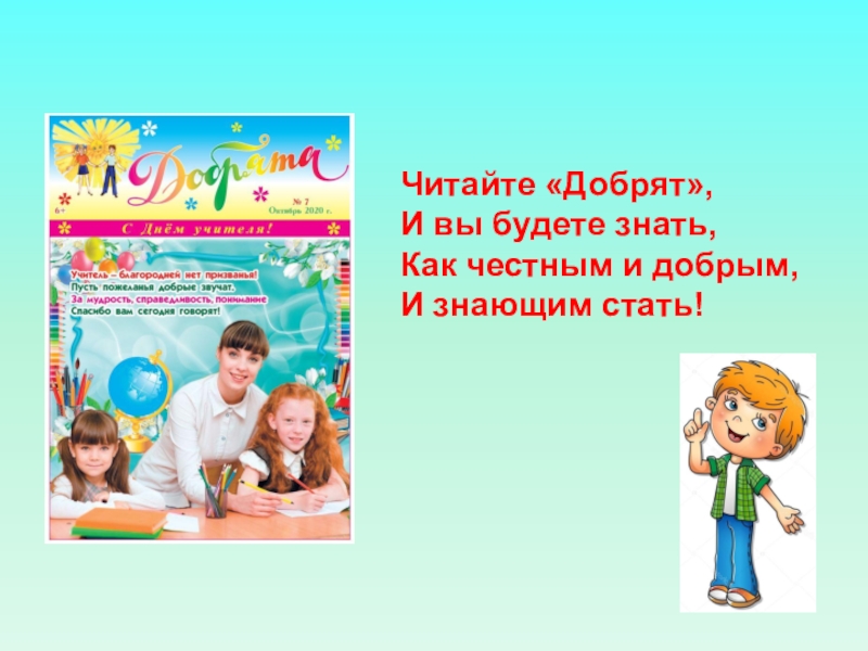 Читайте «Добрят»,  И вы будете знать,  Как честным и добрым,  И знающим стать!