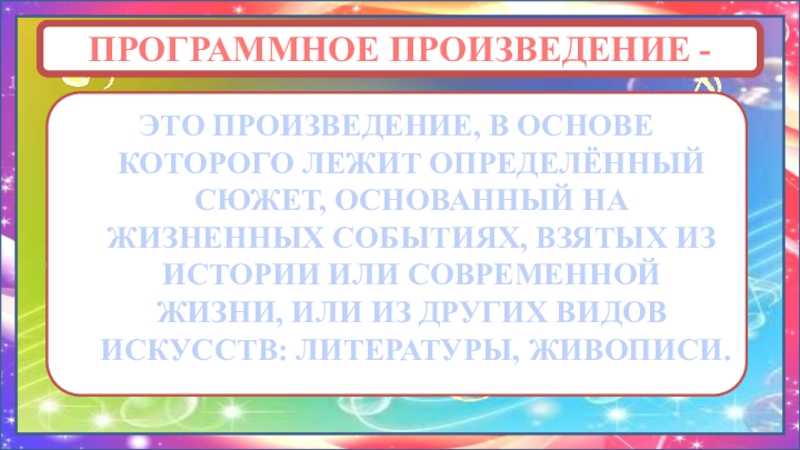 ОБРАЩАЯСЬ К ЛИТЕРАТУРНЫМ ИСТОЧНИКАМ. ЭТИ ПРОИЗВЕДЕНИЯ НАЗЫВАЮТ ПРОГРАММНОЙ МУЗЫКОЙ.