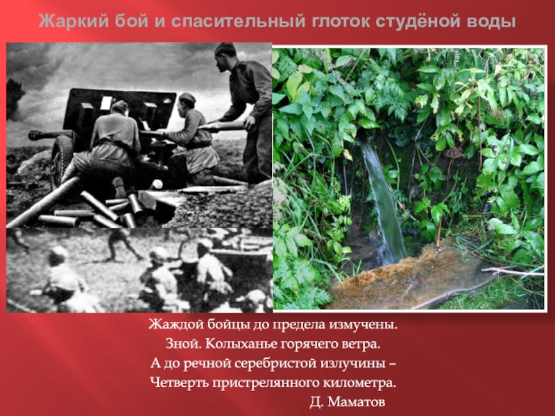 Слайд 9Жаркий бой и спасительный глоток студёной воды