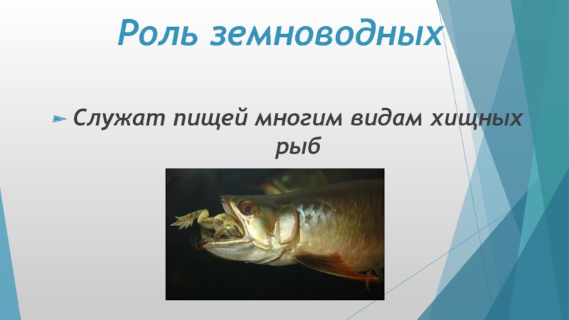 Роль земноводныхСлужат пищей многим видам хищных рыб