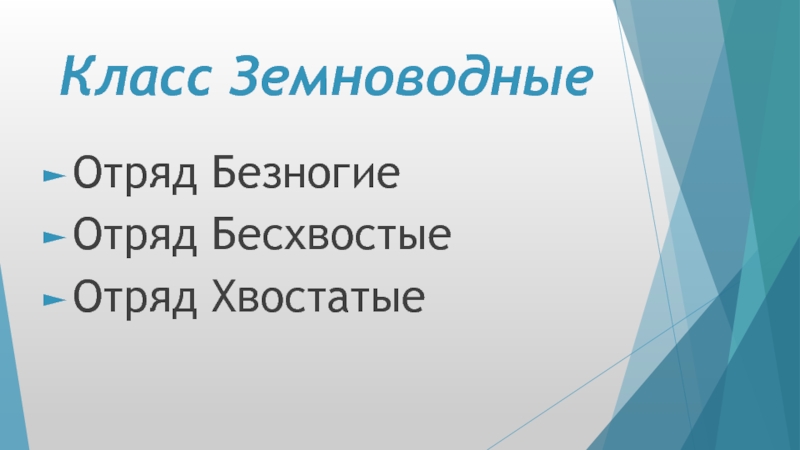 Класс ЗемноводныеОтряд БезногиеОтряд БесхвостыеОтряд Хвостатые