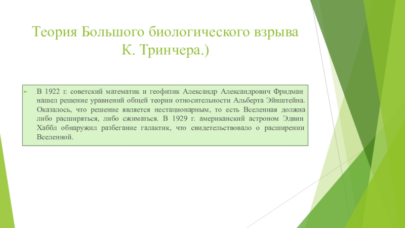 Слайд 31Теория Большого биологического взрыва К. Тринчера.)