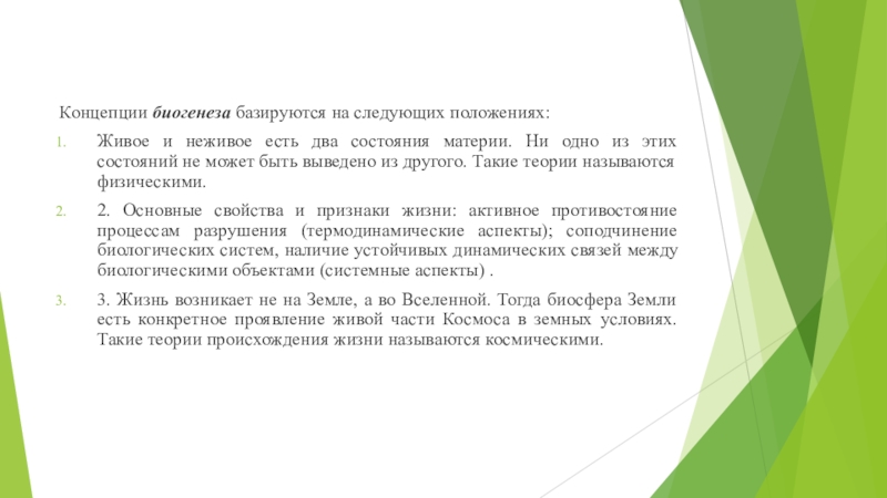 Слайд 8Концепции биогенеза базируются на следующих положениях: