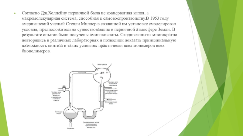 Слайд 17Согласно Дж.Холдейну первичной была не коацерватная капля, а макромолекулярная система,
