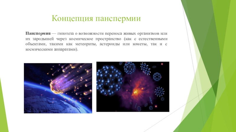 Слайд 9Таким образом, концепции биогенеза объединяют, в основном, космоцентрические физические гипотезы
