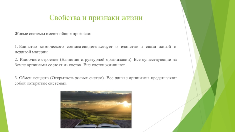 2. Основные свойства и признаки жизни: активное противостояние процессам разрушения (термодинамические аспекты); соподчинение биологических систем, наличие устойчивых динамических связей между биологическими объектами (системные аспекты) .