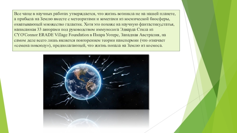 Слайд 22Все чаще в научных работах утверждается, что жизнь возникла не