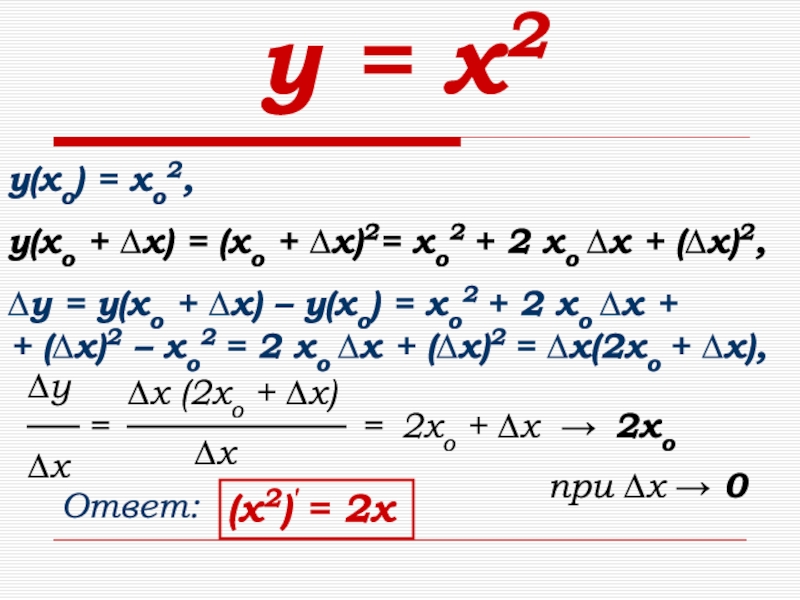 f (хо + х ) = f(1 + 0,5) = f(1,5) = 1,52 = 2,25,
