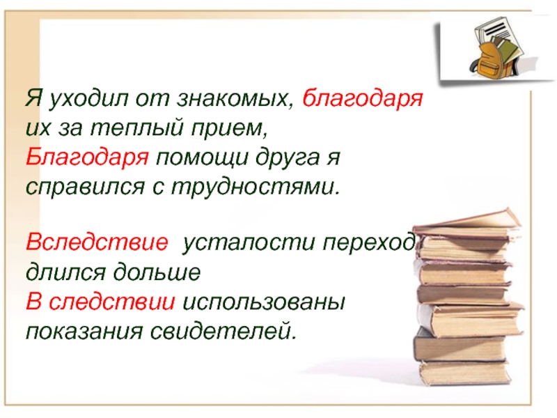 Я уходил от знакомых, благодаря их за теплый прием,Благодаря помощи друга я справился с трудностями.Вследствие усталости переход