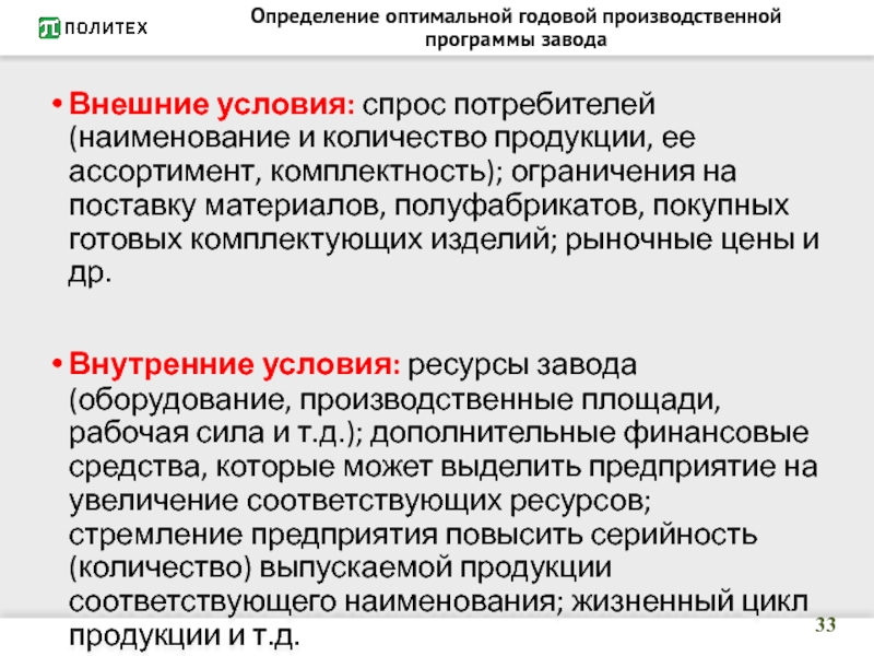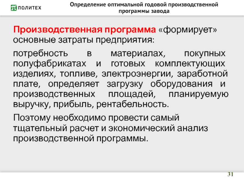 годовой производственной программы