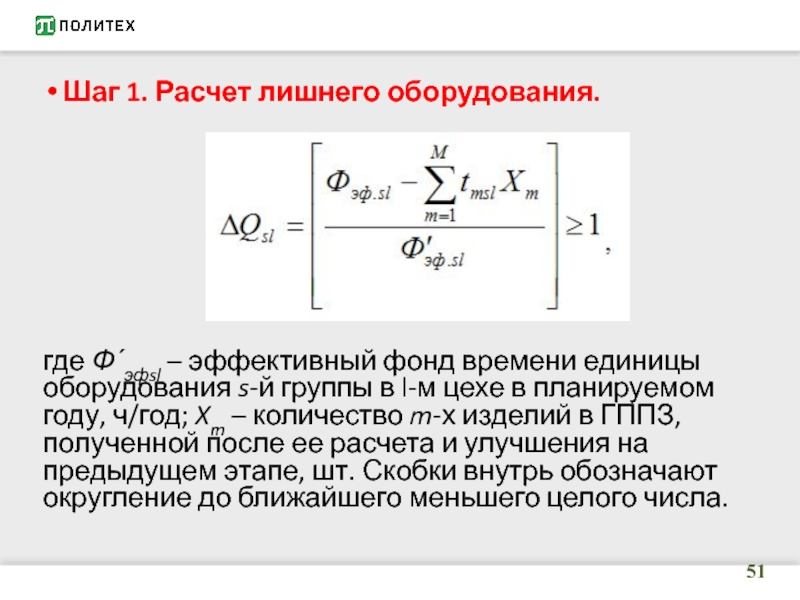 Слайд 51Шаг 1. Расчет лишнего оборудования.