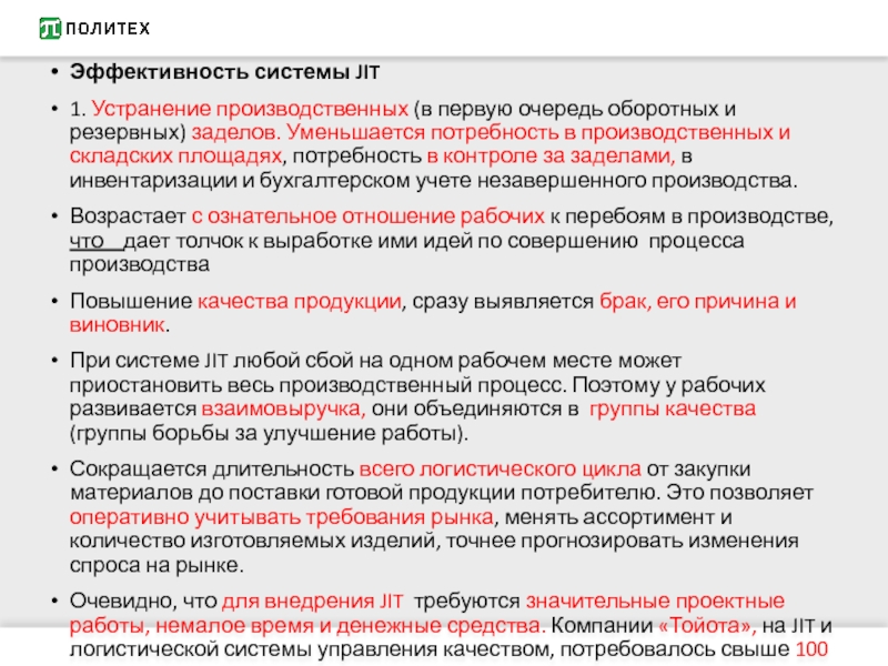 Слайд 63Эффективность системы JIT