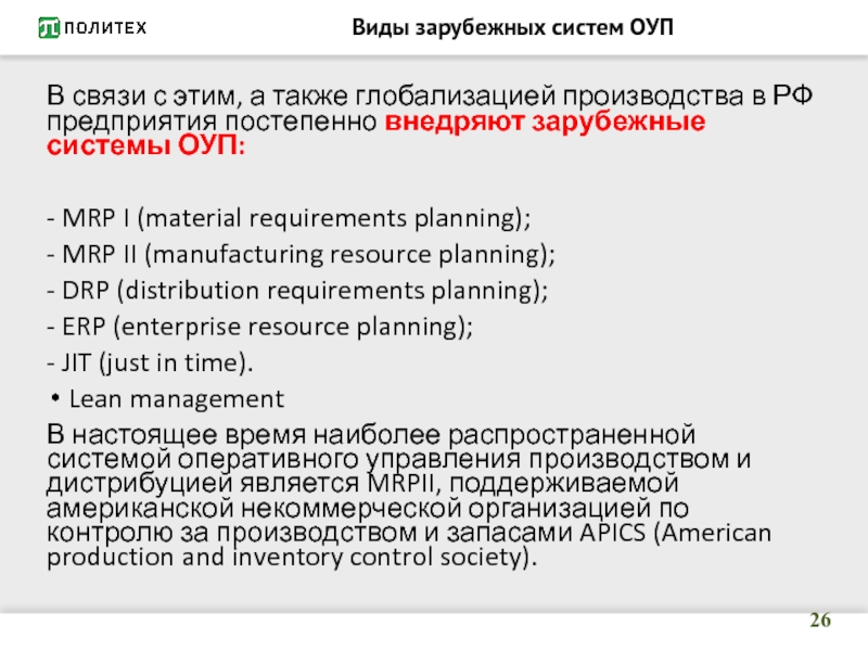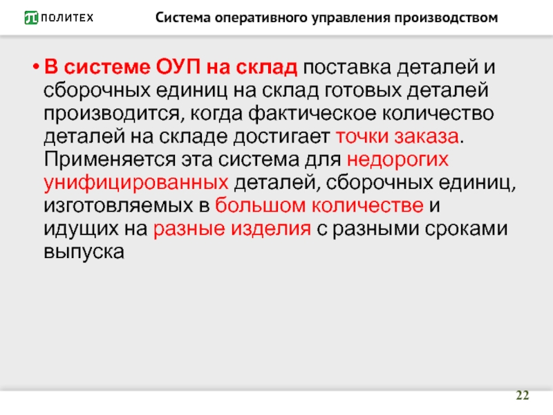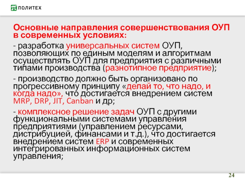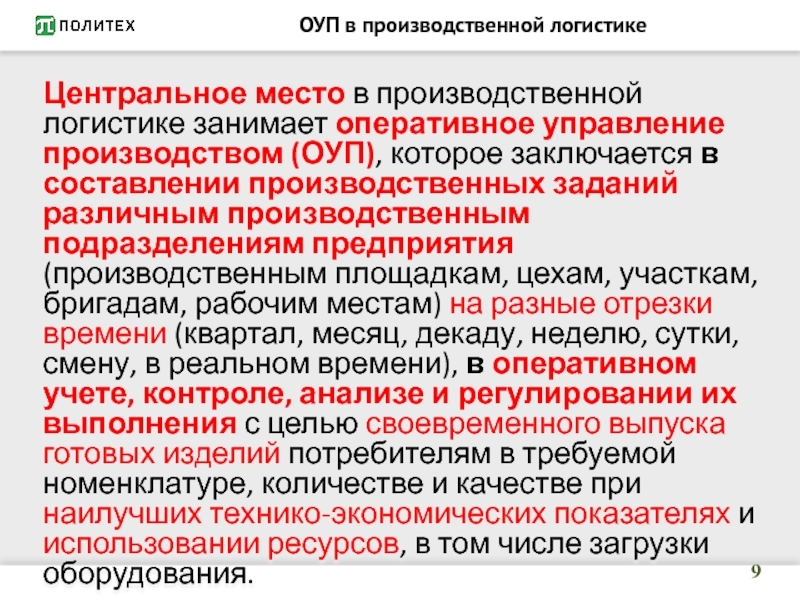 Слайд 9ОУП в производственной логистике