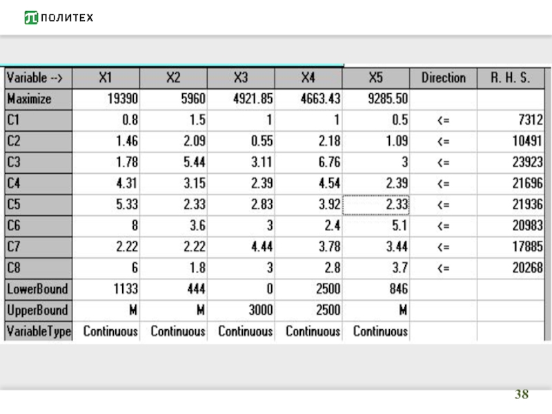 Решение ЗЛП