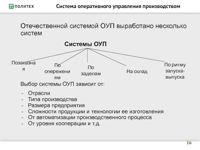 управление производством (ОУП), которое заключается в составлении производственных заданий различным