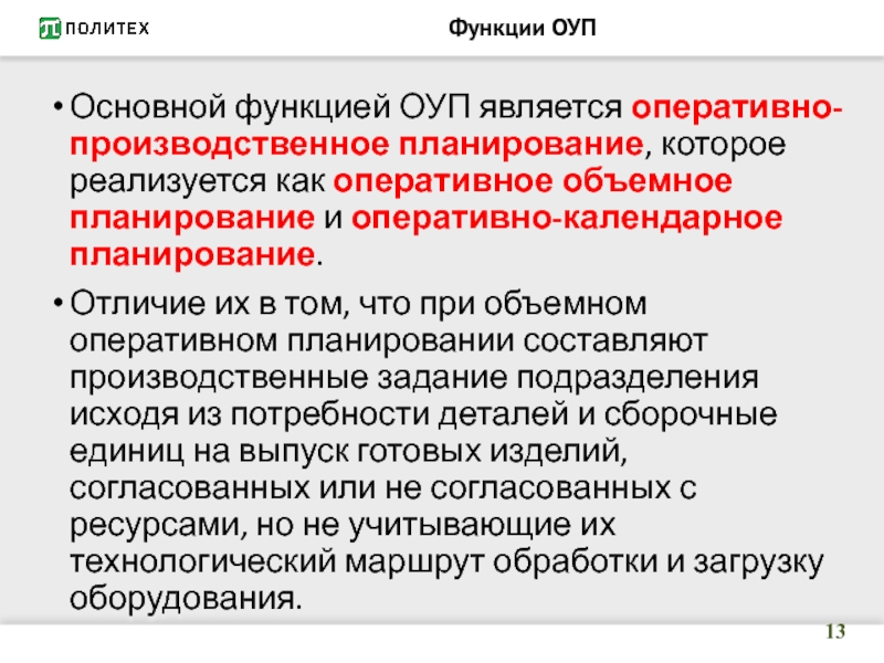 Основной функцией ОУП является оперативно-производственное планирование, которое реализуется как