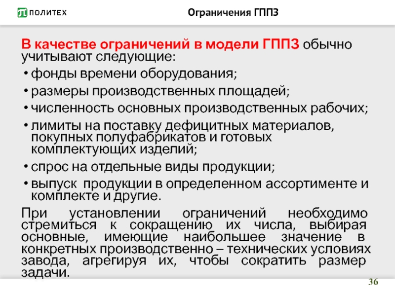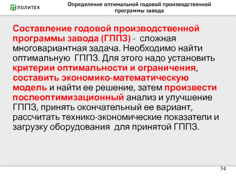 на заводе в связи с постоянным изменением номенклатуры выпускаемой продукции и спроса на нее, обновлением технологии производства, установкой нового оборудования и т.д. Эту диспропорцию можно ликвидировать путем продажи неиспользуемого оборудования и приобретения на эти средства дефицитного оборудования и таким образом улучшить ГППЗ. Это производится в несколько шагов.