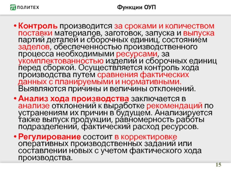 Слайд 10Содержание оперативного управления производством