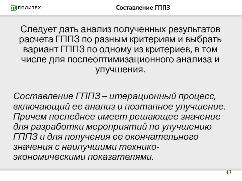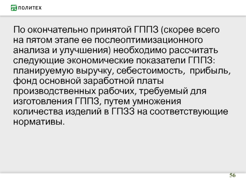 Слайд 56По окончательно принятой ГППЗ (скорее всего на пятом этапе ее