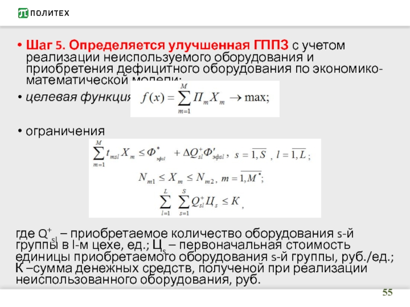 Слайд 55Шаг 5. Определяется улучшенная ГППЗ с учетом реализации неиспользуемого оборудования