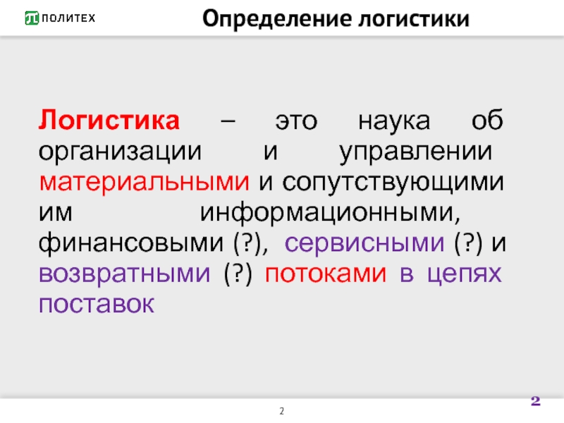 Слайд 2Определение логистики
