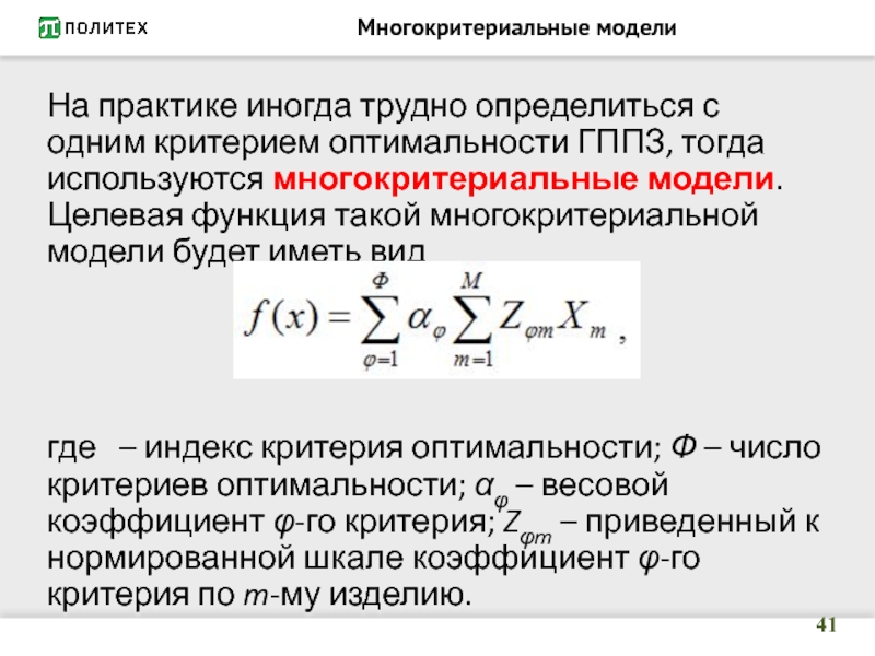 Расчет по нескольким критериям с последующим поиском компромиссного решения