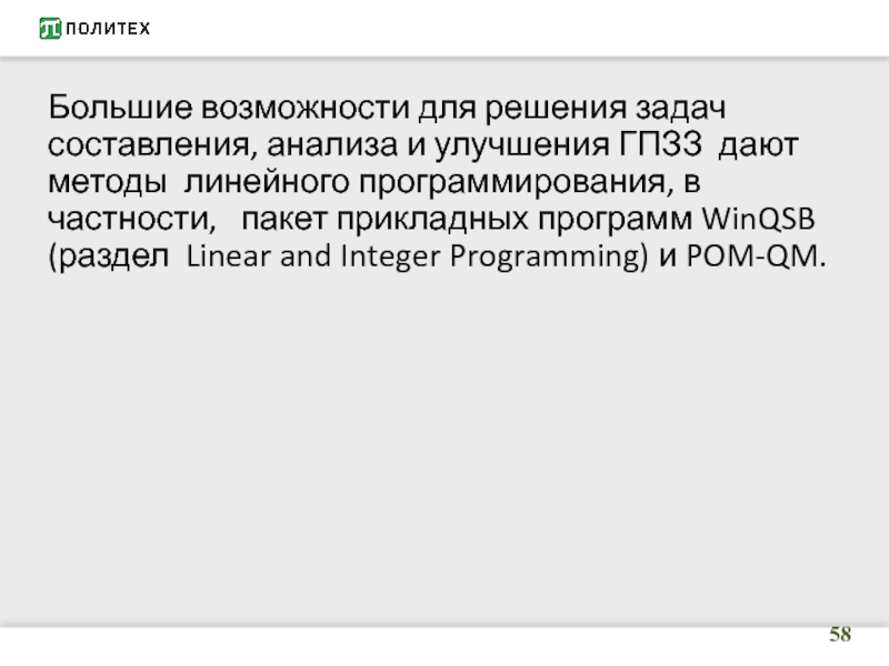 Слайд 58Большие возможности для решения задач составления, анализа и улучшения ГПЗЗ