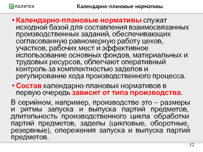Слайд 12Календарно-плановые нормативы