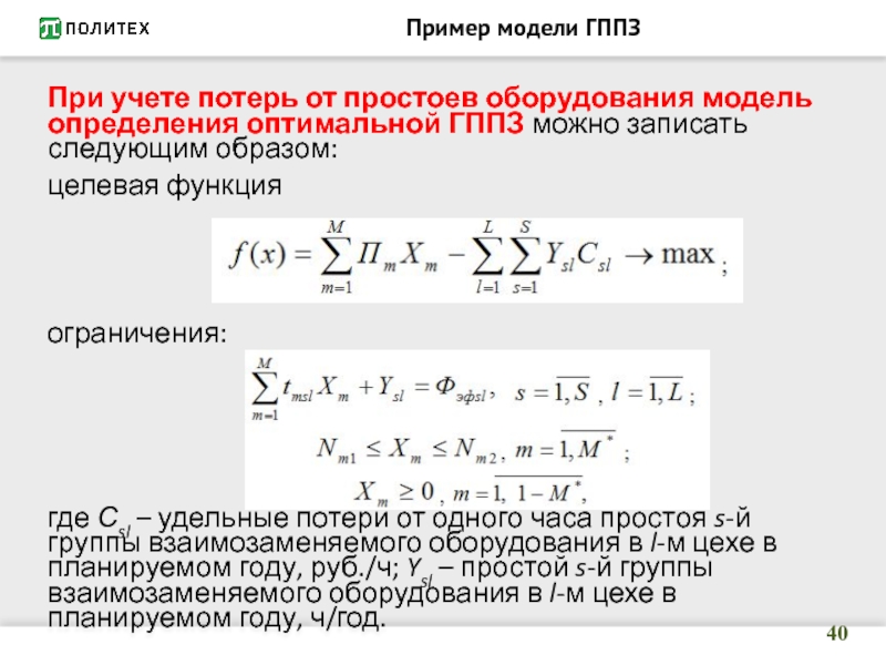 ч/год; Xm – количество m-х изделий в ГППЗ, полученной после ее расчета и улучшения на предыдущем этапе, шт. Скобки внутрь обозначают округление до ближайшего меньшего целого числа.