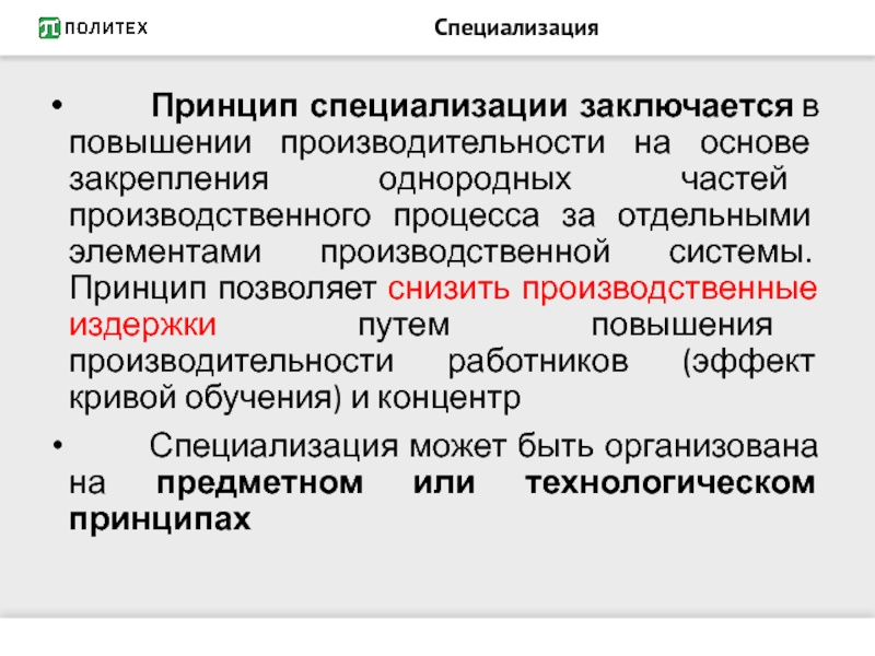 Принцип специализации заключается в повышении производительности на