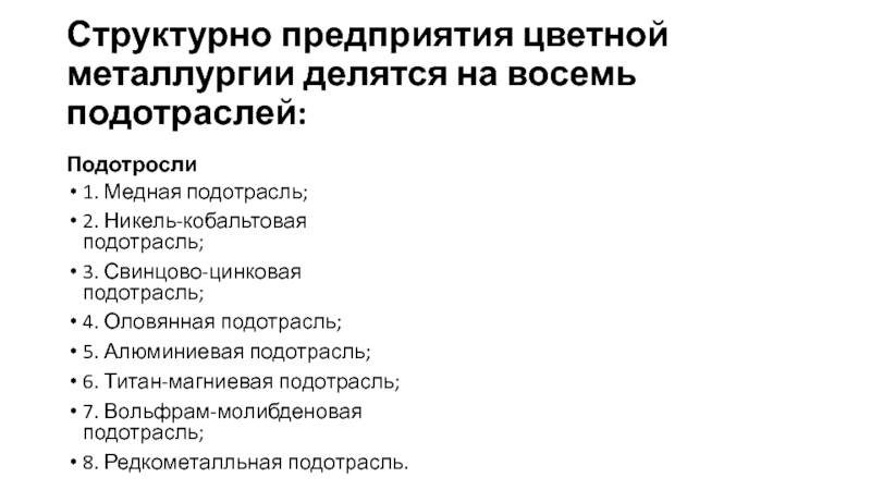 Титано-магниевая промышленность размещается преимущественно на Урале, как в районах добычи сырья (Березниковский титано-магниевый завод), так и в районах дешёвой энергии (Усть-Каменогорский титано-магниевый завод). Заключительная стадия титано-магниевой металлургии — обработка металлов и их сплавов — чаще всего размещается в районах потребления готовой продукции.