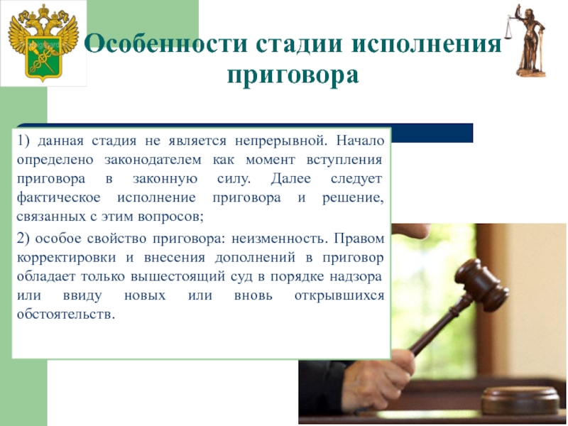 Слайд 27Особенности стадии исполнения приговора