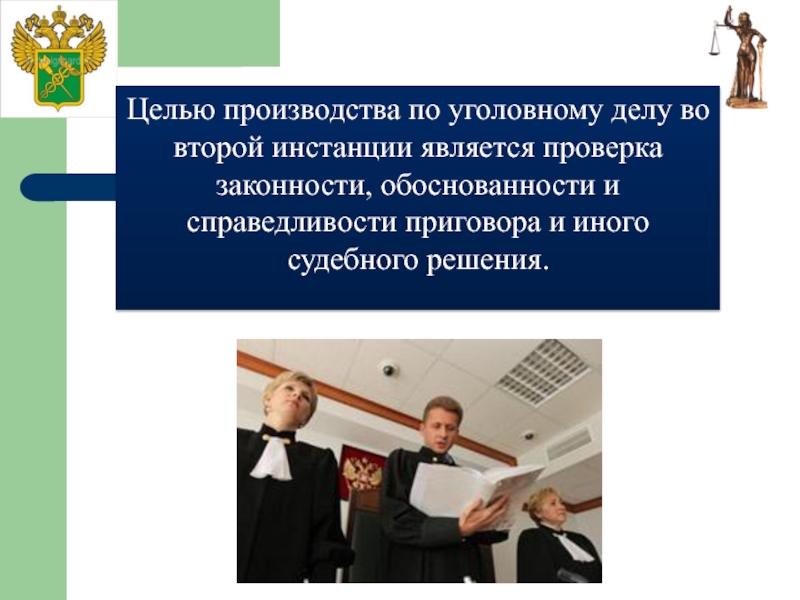 Слайд 5Целью производства по уголовному делу во второй инстанции является проверка