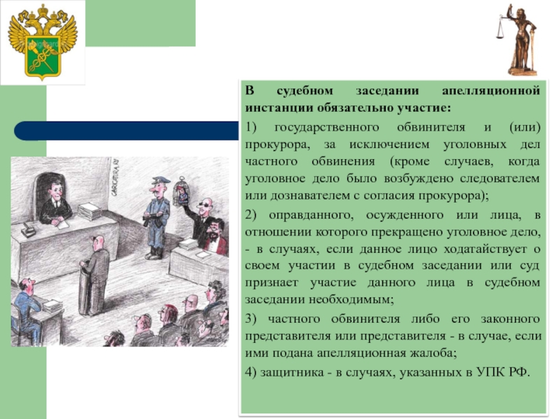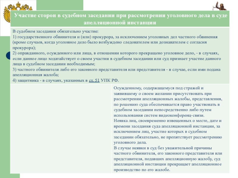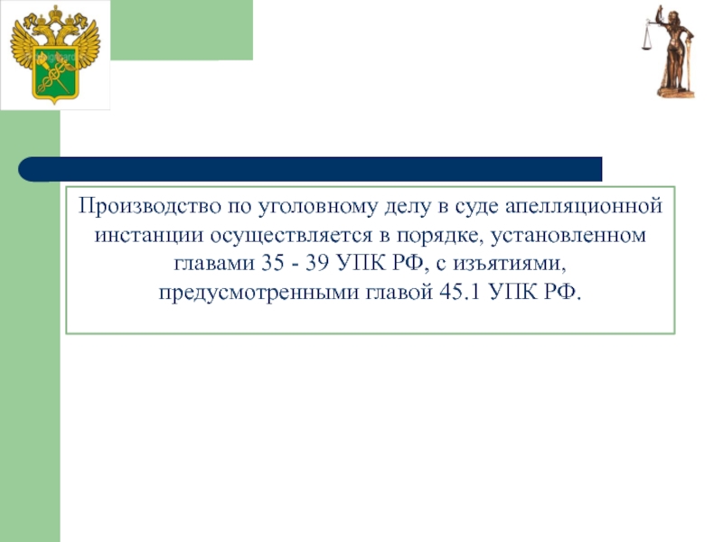 Слайд 19Производство по уголовному делу в суде апелляционной инстанции осуществляется в