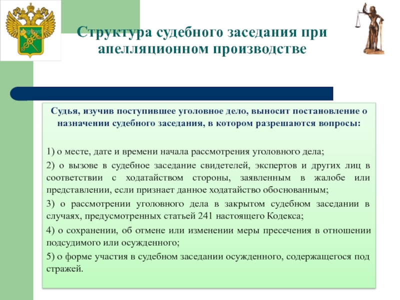 Слайд 17Структура судебного заседания при апелляционном производстве