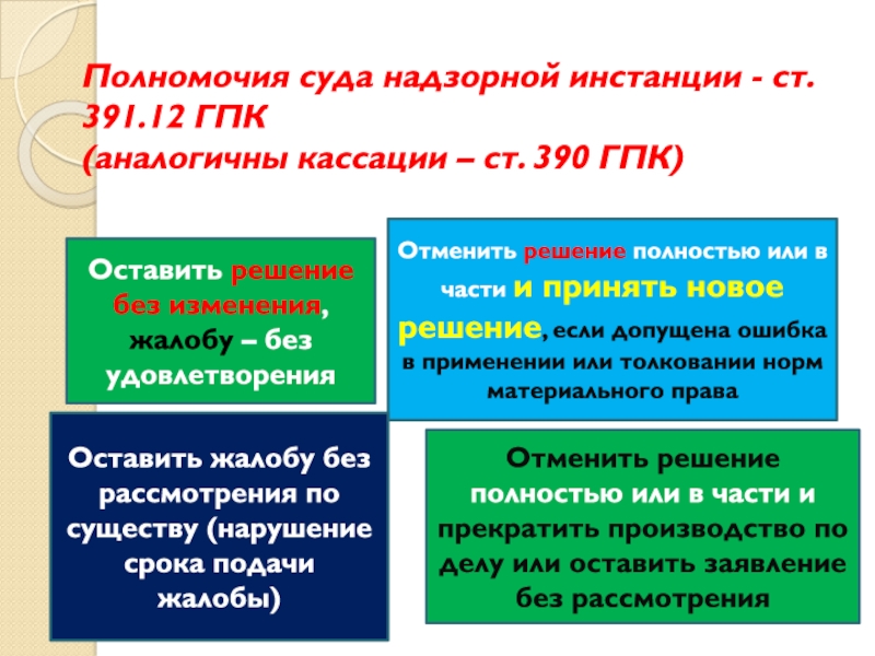 Полномочия суда надзорной инстанции - ст. 391.12 ГПК