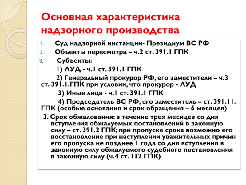 Слайд 1ПРОИЗВОДСТВО В СУДЕ НАДЗОРНОЙ ИНСТАНЦИИ
