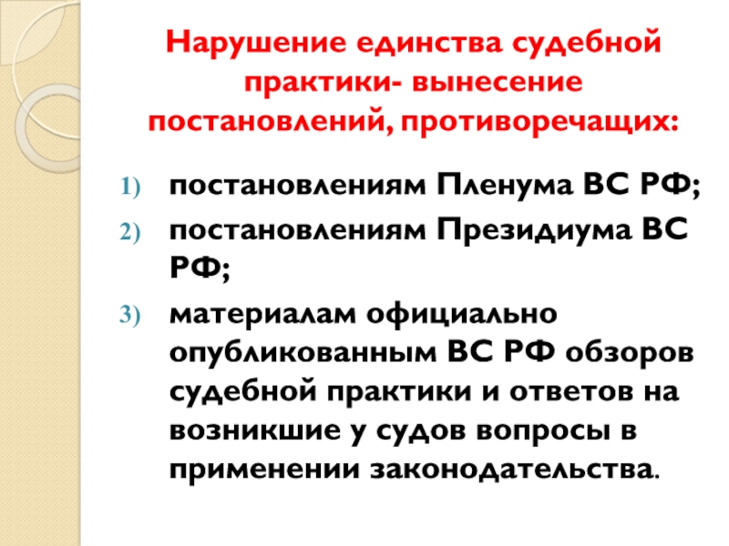 Нарушение единства судебной практики- вынесение постановлений, противоречащих: