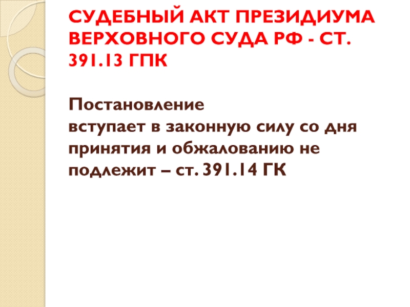 СУДЕБНЫЙ АКТ ПРЕЗИДИУМА ВЕРХОВНОГО СУДА РФ - СТ. 391.13 ГПК