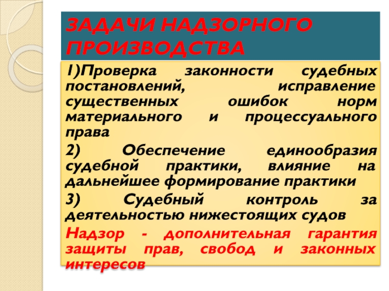 Слайд 4ЗАДАЧИ НАДЗОРНОГО ПРОИЗВОДСТВА