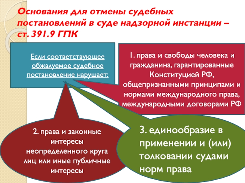 Слайд 11Основания для отмены судебных постановлений в суде надзорной инстанции –