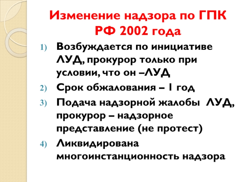 Слайд 3Изменение надзора по ГПК РФ 2002 года