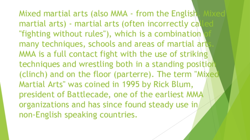 Слайд 7Mixed martial arts (also MMA - from the English. Mixed