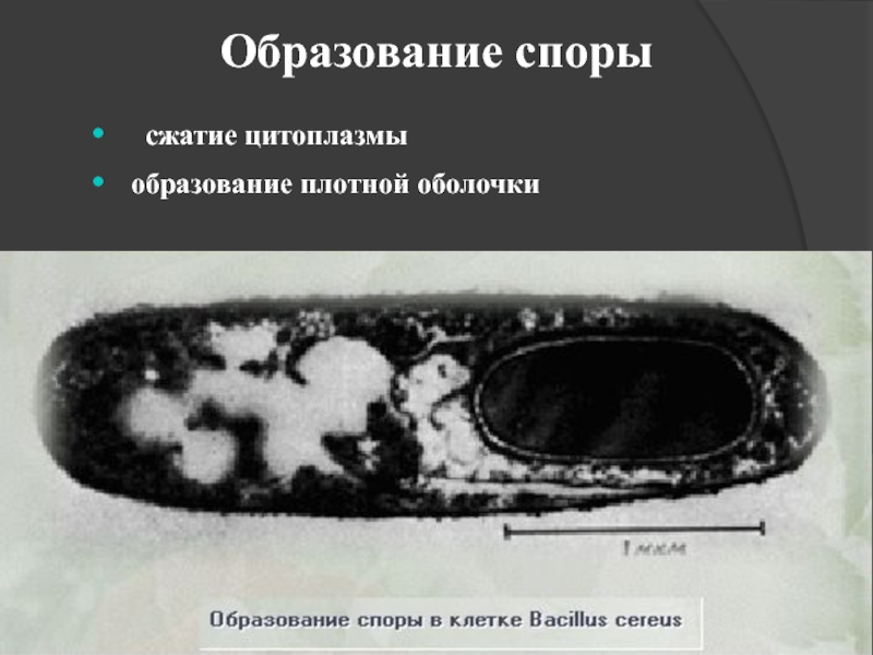Образование споры сжатие цитоплазмыобразование плотной оболочки